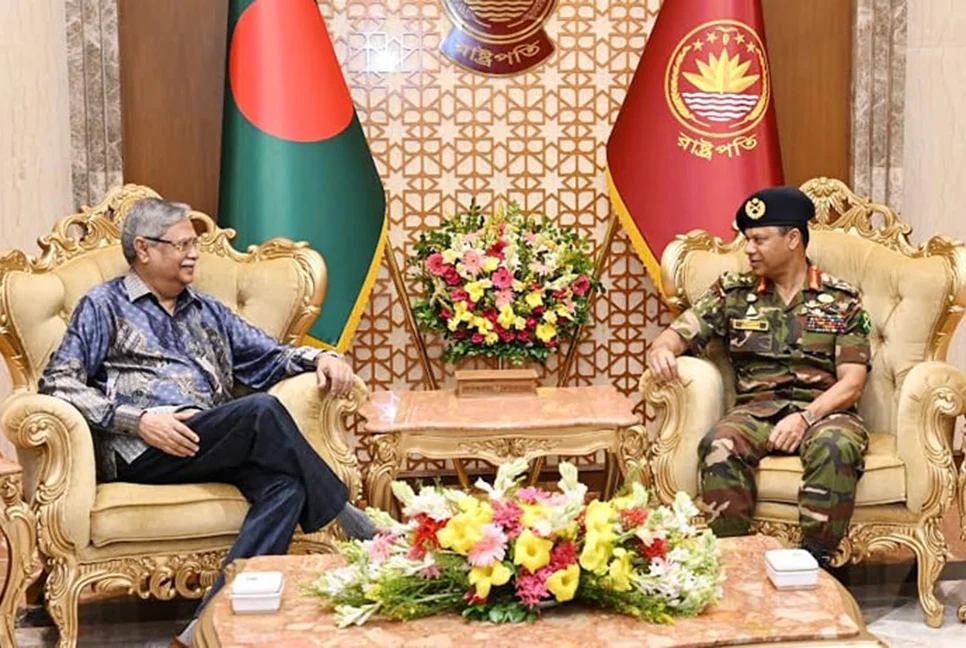 রাষ্ট্রপতি মো. সাহাবুদ্দিনের সঙ্গে আজ বঙ্গভবনে বিদায়ী সাক্ষাৎ করেছেন বাংলাদেশ সেনাবাহিনী প্রধান জেনারেল এসএম শফিউদ্দিন আহমেদ।