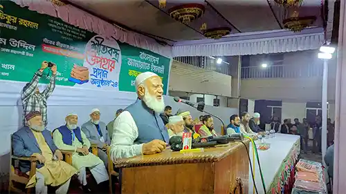 তিনি বলেন, জামায়াতে ইসলামী এমন এক বৈষম্যহীন ও ইনসাফপূর্ণ সমাজ প্রতিষ্ঠা করতে চায় যে সমাজে কেউ না খেয়ে থাকবে, আর কেউ অবৈধভাবে সম্পদ গড়ে বিদেশে পাচারের মাধ্যমে অর্থবিত্তের পাহাড় জমাবে এমন হবে না। আর কুরআন-সুন্নাহর আইনের মাধ্যমে এমন শান্তির সমাজ প্রতিষ্ঠা করা সম্ভব। যে সমাজে সৎ কাজের আদেশ এবং অসৎ কাজের নিষেধ করা হবে-সে সমাজই আমাদের কাঙ্ক্ষিত ও ইপ্সিত লক্ষ্য। সেই স্বপ্নের সমাজ বিনির্মাণে সকলকে জামায়াতের পতাকাতলে ঐক্যবদ্ধ হওয়ার আহ্বান জানাচ্ছি।
