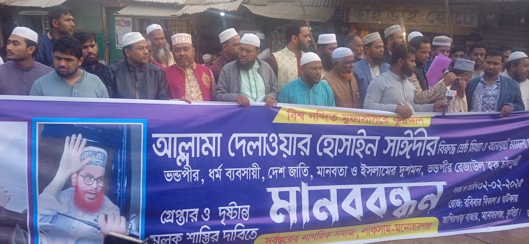 মানববন্ধন ও সংক্ষিপ্ত সমাবেশে বক্তারা উল্লেখ করেন, আল্লামা দেলাওয়ার হোসাইন সাঈদী বাংলাদেশের একজন জননন্দিত আলেম ছিলেন। যাকে সারা বিশ্বের মানুষ সম্মান করতো। কিন্তু ভন্ডপীর রেজাউল হক চাঁদপুরী রাষ্ট্রীয় ষড়যন্ত্রের অংশ হিসেবে মিথ্যা অভিযোগে মাওলানা দেলাওয়ার হোসাইন সাঈদীর বিরুদ্ধে ২০১০ সালে একটি মামলা দায়ের করেন। ওই মামলায় ফ্যাসিষ্ট আওয়ামী সরকার মাওলানা দেলাওয়ার হোসাইন সাঈদীকে গ্রেফতার করে। সর্বশেষ মাওলানা সাঈদীকে চিকিৎসার নামে পরিকল্পিতভাবে হত্যা করা হয়।