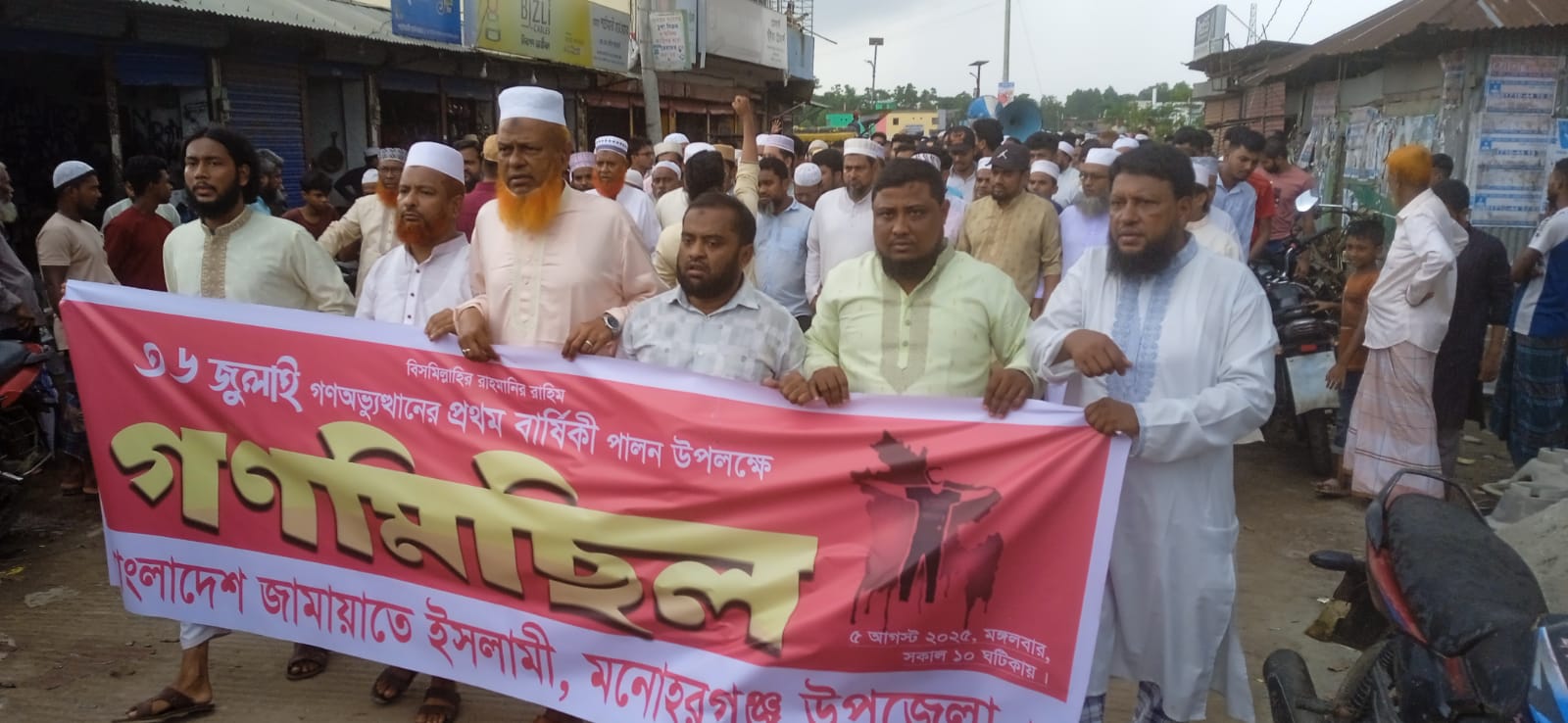৩৬ জুলাই গণঅভ্যুত্থানে প্রথম বার্ষিকী পালন উপলক্ষে গণমিছিল করেছে মনোহরগঞ্জ উপজেলা জামায়াত।