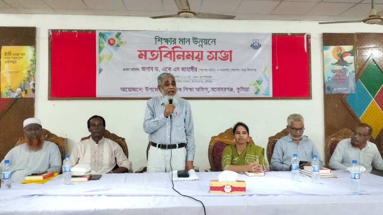 কুমিল্লার মনোহরগঞ্জ উপজেলায় শিক্ষার মান উন্নয়নে মতবিনিময় সভার আয়োজন করা হয়। বৃহস্পতিবার(২১আগস্ট) দুপুর ১২টায় উপজেলা অডিটোরিয়ামে আয়োজিত সভায় প্রধান অতিথি ছিলেন সাবেক জনপ্রশাসন মন্ত্রণালয়ের সাবেক সচিব ড.একে এম জাহাঙ্গীর।