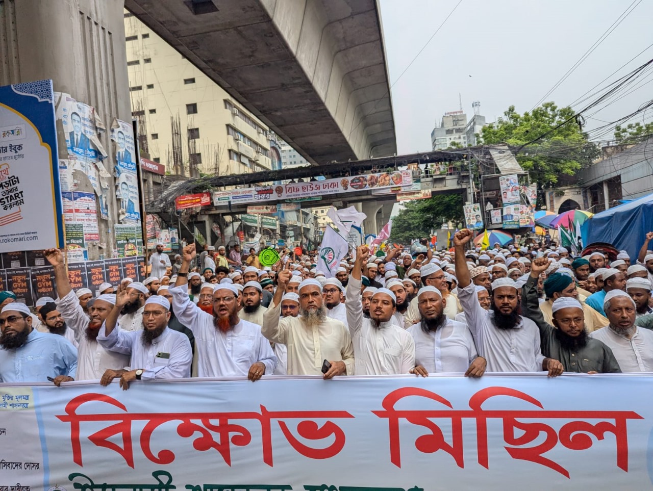 আগামীকাল এই দাবীতে বিভাগীয় শহরে বিক্ষোভ সমাবেশ ও মিছিল অনুষ্ঠিত হবে। ঢাকায় বাড্ডা ও ধোলাইখাল এলাকায় দুইটি সমাবেশ অনুষ্ঠিত হবে । ইসলামী আন্দোলন বাংলাদেশের আমীর মুফতি সৈয়দ মুহাম্মাদ রেজাউল করীম, পীর সাহেব চরমোনাই উভয় সমাবেশ উপস্থিত থাকবেন।