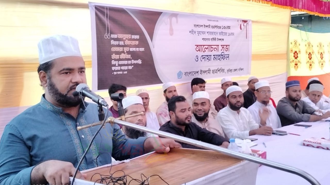 জেলা ছাত্রশিবিরের সভাপতি মহিউদ্দিন রনির সভাপতিত্বে আলোচনা সভায় প্রধান অতিথির বক্তব্য রাখেন কুমিল্লা-১০ আসনে জামায়াত মনোনীত এমপি প্রার্থী মাও. মুহাম্মদ ইয়াছিন আরাফাত।