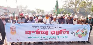 মহান বিজয় দিবস উপলক্ষে কুমিল্লার মনোহরগঞ্জে বর্ণাঢ্য বিজয় র্যালি ও সমাবেশ করেছে বাংলাদেশ জামায়াতে ইসলামী। কুমিল্লা-০৯ (লাকসাম-মনোহরগঞ্জ) আসনে জামায়াতে ইসলামী মনোনীত এমপি পদপ্রার্থী অধ্যাপক ড. এ কে এম সৈয়দ সরওয়ার উদ্দিন সিদ্দিকীর নেতৃত্বে মঙ্গলবার (১৬ ডিসেম্বর) সকালে উপজেলার নাথেরপেটুয়া স্টেশন বাজারে র্যালিটি অনুষ্ঠিত হয়। র্যালিটি বাজারের প্রধান সড়কগুলো প্রদক্ষিণ শেষে এক সংক্ষিপ্ত সমাবেশের মাধ্যমে শেষ হয়।