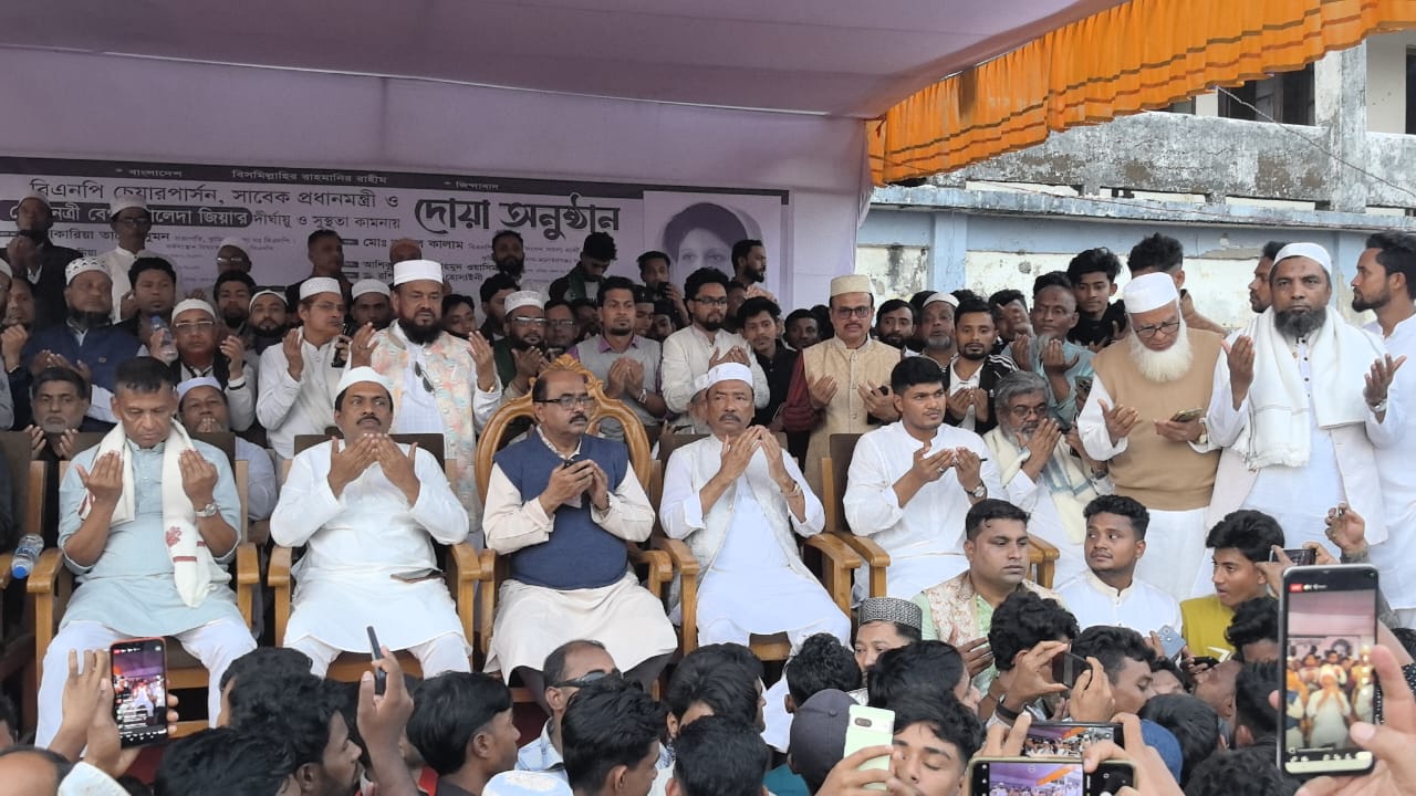 অসুস্থ বিএনপি চেয়ারপারসন বেগম খালেদা জিয়ার সুস্থতা কামনা করে কুমিল্লার মনোহরগঞ্জে দোয়া মাহফিল অনুষ্ঠিত হয়েছে। দোয়া মাহফিল প্রধান অতিথি হিসেবে বক্তব্য রাখেন বিএনপির কেন্দ্রীয় শিল্পবিষয়ক সম্পাদক মোঃ আবুল কালাম। শুক্রবার বিকেলে মনোহরগঞ্জ সরকারি স্কুল এন্ড কলেজ মাঠে উপজেলা বিএনপির সভাপতি ইলিয়াস পাটওয়ারীর সভাপতিত্বে সাধারণ সম্পাদক অধ্যাপক সরওয়ার জাহান ভূইয়া দোলনের সঞ্চালনায় দোয়া মাহফিলে প্রধান বক্তা হিসেবে বক্তব্য রাখেন কুমিল্লা বিভাগীয় বিএনপির সহ সাংগঠনিক সম্পাদক মোস্তাক মিয়া। বিশেষ অতিথি হিসেবে বক্তব্য রাখেন ডাকসুর সাবেক সদস্য ড. রশিদ আহমেদ হোসাইনি, কুমিল্লা মহানগর বিএনপির সভাপতি উদবাতুল বারী আবু, কুমিল্লা দক্ষিণ বিএনপির সহ সভাপতি আমিরুজ্জামান, সাধারণ সম্পাদক আশিকুর রহমান মাহমুদ ওয়াশিম, ঢাকা বিশ্ব বিদ্যালয়ে ছাত্রদল সমর্থিত সাবেক ভিপি প্রার্থী আবিদুল ইসলাম খান।