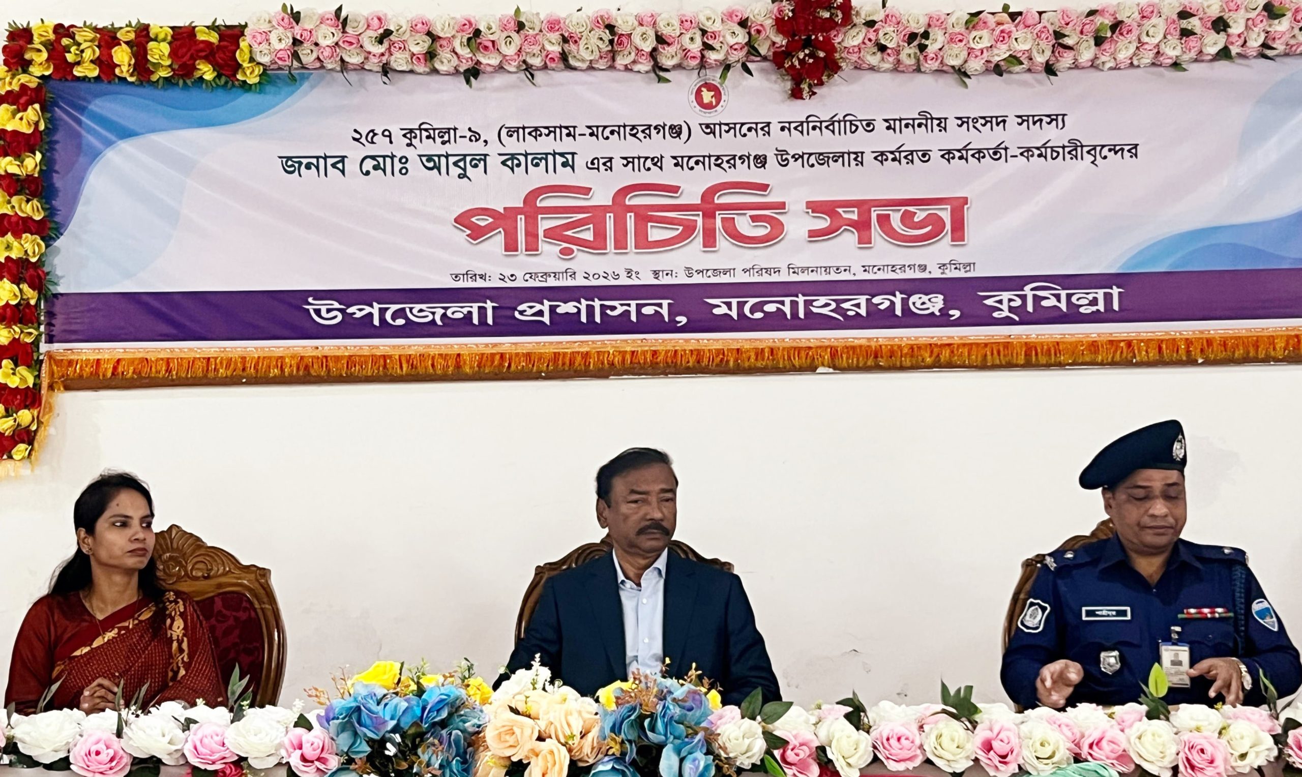 কুমিল্লা-৯ (লাকসাম-মনোহরগঞ্জ) আসনের নবনির্বাচিত জাতীয় সংসদ সদস্য মো. আবুল কালাম এমপি মহোদয়ের সাথে মনোহরগঞ্জ উপজেলা কর্মরত সকল কর্মকর্তা-কর্মচারীদের এক পরিচিতি সভা অনুষ্ঠিত হয়েছে।