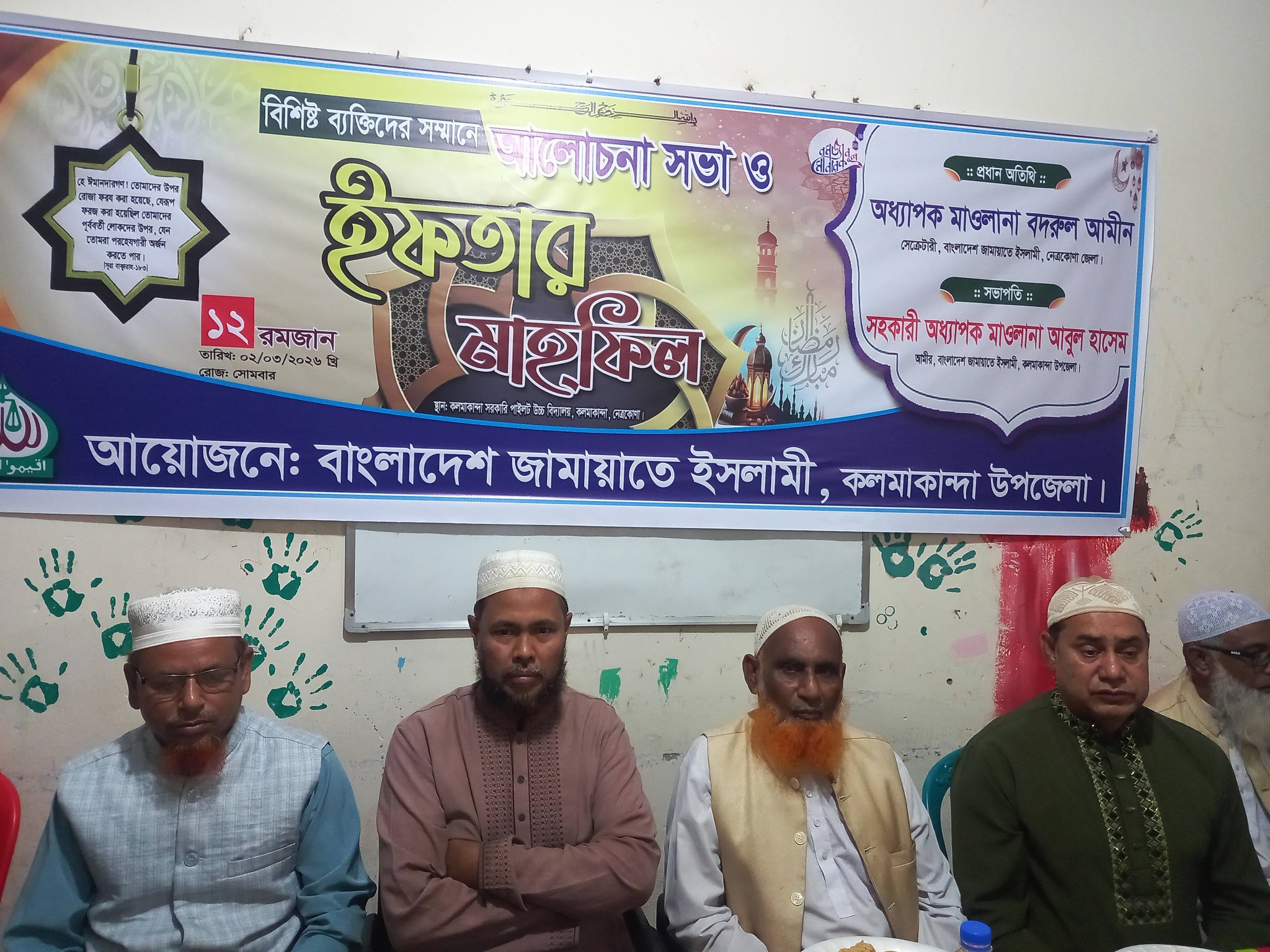 নেত্রকোনার কলমাকান্দা উপজেলায় জামায়াতে ইসলামীর উদ্যোগে আলোচনা সভা ও ইফতার মাহফিল অনুষ্ঠিত হয়েছে।
