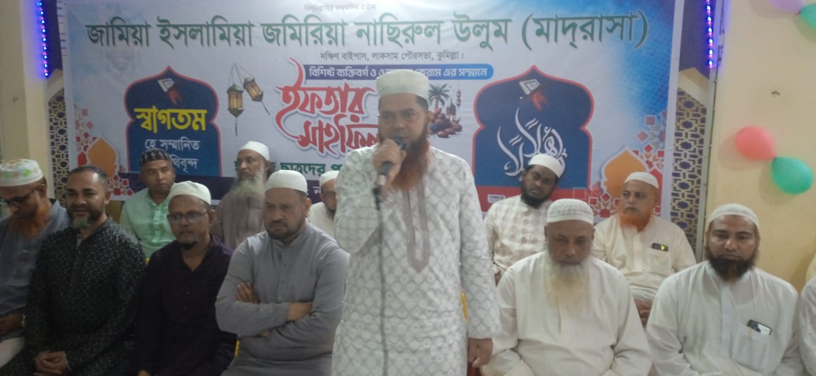 মাদরাসার মুহতামিম হাফেজ মোহাম্মদ উল্লাহর সভাপতিত্বে ইফতার মাহফিলে আরো বক্তব্য রাখেন কুমিল্লা নারী ও শিশু ট্রাইব্যুনালের পিপি এডভোকেট বদিউল আলম সুজন, লাকসাম পৌরসভা বিএনপির সাধারণ সম্পাদক গোলাম ফারুক, লাকসাম উপজেলা হেফাজতে ইসলামের সভাপতি হাফেজ মাওলানা আবু ইউসুফ, মাইনুল হক মিঠুসহসহ অভিভাবক ও বিভিন্ন শ্রেণিপেশার মানুষ। ইফতার মাহফিলে হাফেজ ছাত্রদের পাগড়ি প্রদান করা হয়।