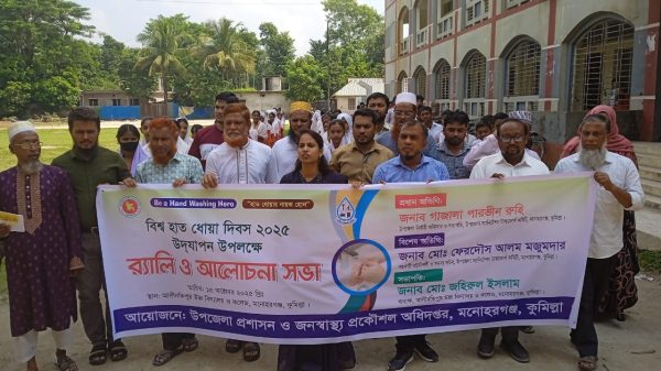 মনোহরগঞ্জ কুমিল্লা সংবাদদাতা “হাত ধোয়ার নায়ক হোন” স্লোগানে কুমিল্লার মনোহরগঞ্জে আন্তর্জাতিক হাত ধোয়া দিবস উদযাপিত হয়েছে। উপজেলা জনস্বাস্থ্য প্রকৌশল অধিদপ্তরের উদ্যোগে বুধবার উপজেলার আলীনকিপুর স্কুল এন্ড কলেজ হলরুমে আলোচনা সভা