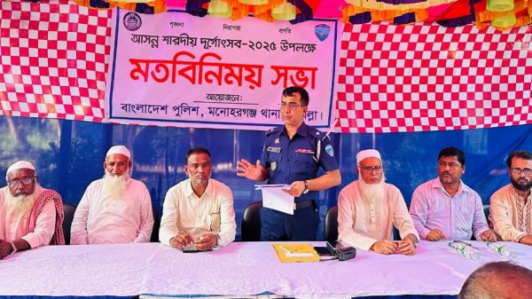 মনোহরগঞ্জ কুমিল্লা সংবাদদাতা মনোহরগঞ্জ থানার উদ্যোগে ওপেন হাউসডে এবং আসন্ন শারদীয় দুর্গা উৎসব উদযাপন উপলক্ষে মতবিনিময় সভা অনুষ্ঠিত হয়েছে। শুক্রবার থানা চত্বরে অফিসার ইনচার্জ বিপুল চন্দ্র দের সভাপতিত্বে মতবিনিময় সভায়